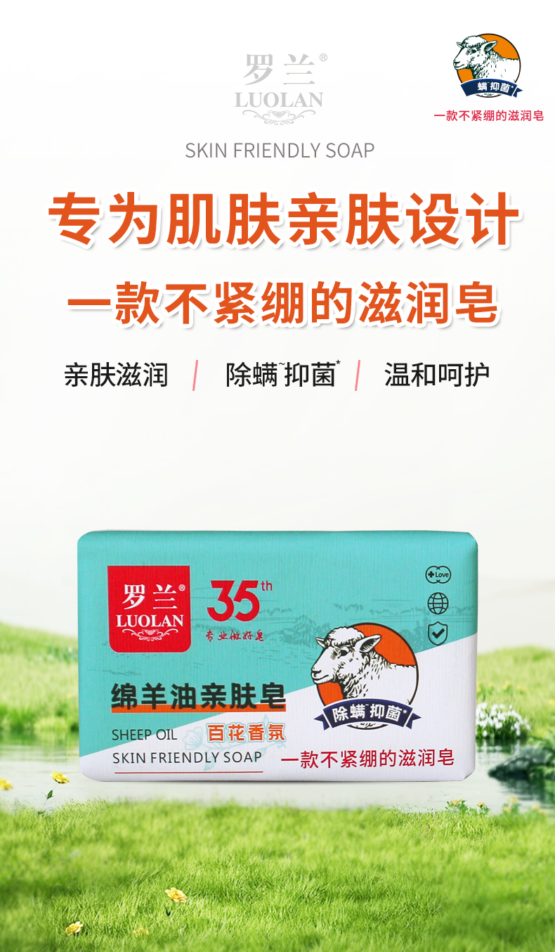 蕴含绵羊油与羊毛脂油,呵护滋润皮肤,肤感舒适不紧绷;添加植物抑螨剂与银离子抑菌剂,温和除螨抑菌;适合任何肤质,尤其适合干性皮肤;沐浴时将香皂轻柔打发成厚重乳液状泡沫,将泡沫涂抹身上沐浴,肤感细腻顺滑,用后肌肤舒缓柔润.